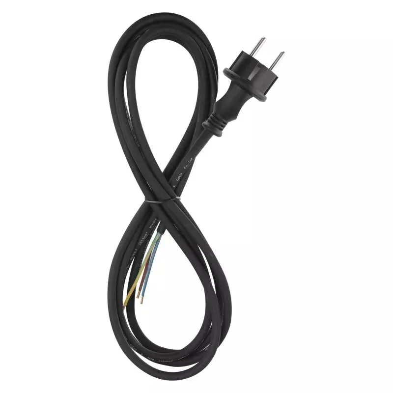 Przewód przyłączeniowy marki EMOS składa się z 3 żyl H05RR-F o średnicy 1mm2. Izolację przewodu przyłączeniowego stanowi guma w czarnym kolorze. 3 metrowy przewód zakończony jest wtyczką przystosowaną do gniazd z uziemieniem jak również i bez.