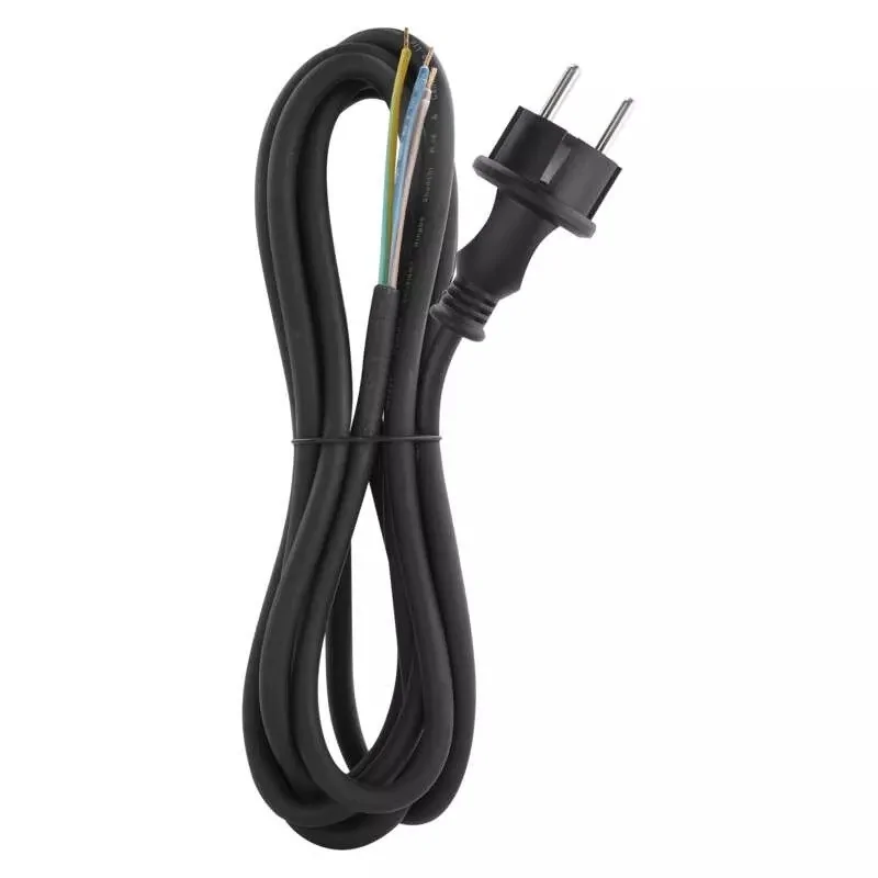 Przewód przyłączeniowy marki EMOS składa się z trzech żyl H05RR-F o średnicy 1,5mm2. Izolację przewodu przyłączeniowego stanowi guma w czarnym kolorze. Trzymetrowy przewód zakończony jest wtyczką przystosowaną do gniazd z uziemieniem jak również i bez.