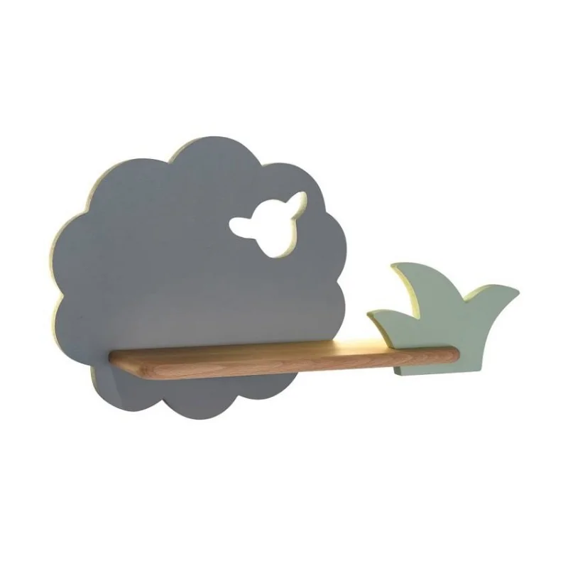 Nowoczesny kinkiet 21-84811 z kolekcji Sheep, ze półeczką w kształcie owieczki oraz podświetleniem LED jest idealnym produktem do zamocowania obok łóżeczka dziecięcego. Zastosowanie źródeł światła LED gwarantuje energooszczędność. Lampa ścienna marki CANDELLUX, wykonany została z drewna w kolorze szaro-zielonym. Kinkiet świeci naturalną barwą światłą, równą 4000K i pobiera moc zaledwie 5W. Półka występuje w kolorach biały, czarny, szary. W serii KIDS, dostępne są różne lampy o różnych kształtach i kolorach.