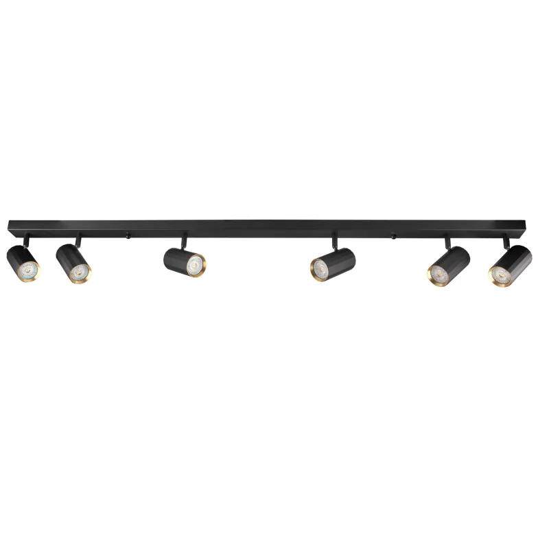 323453 Długa oprawa ścienno sufitowa czarno-złota 6XGU10 NICEA POLUX