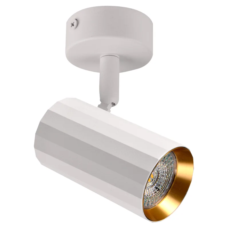 Sufitowo-ścienna oprawa do montażu natynkowego NICEA to nowoczesna forma oświetlenia w kształcie tuby o średnicy 5,5cm. Obudowa w kolorze białym doskonale wkomponuje się w każdą aranżację wnętrza, a złoty spód doda jej charakteru. Prezentowana natynkowa tuba sufitowa sprzedawana jest bez źródła światła w zestawie, co pozwala na samodzielne dobranie żarówki do własnych potrzeb. Biała oprawa sufitowa przystosowana jest do współpracy z żarówką GU10 o maksymalnej mocy 10W led. Wymiary oprawy to 5,5x5,5x10cm. Tubka ze zdobioną powierzchnią wykonana jest z aluminium. IP20. Produkt dostępny także w wersji czarno-złotej.