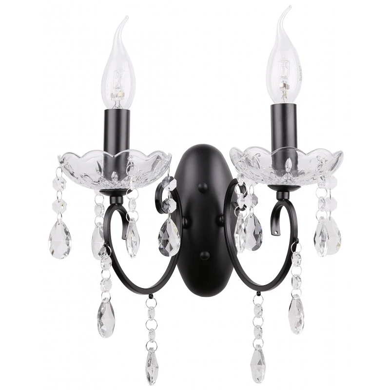 Czarny podwójny kinkiet AURORA Candellux to ekskluzywne połączenie czerni i szkła. Bogate zdobienia kryształowe nadają oprawie wyszukanego stylu. Do kinkietu z kryształkami pasują żarówki z gwintem E14 ( brak w zestawie). Zalecane są żarówki dekoracyjne w kształcie świeczki lub płomyka, które podbiją całościowy efekt. Oświetlenie z lini AURORA to doskonałe rozwiązanie oświetleniowe do sal weselnych, bankietowych, wystroju salonu czy jako oświetlenie do hotelu. W rodzinie produktów dostępne są także lampy wiszące, podłogowe oraz analogiczna linia w kolorze złota. Produkt objęty jest gwarancją producenta.