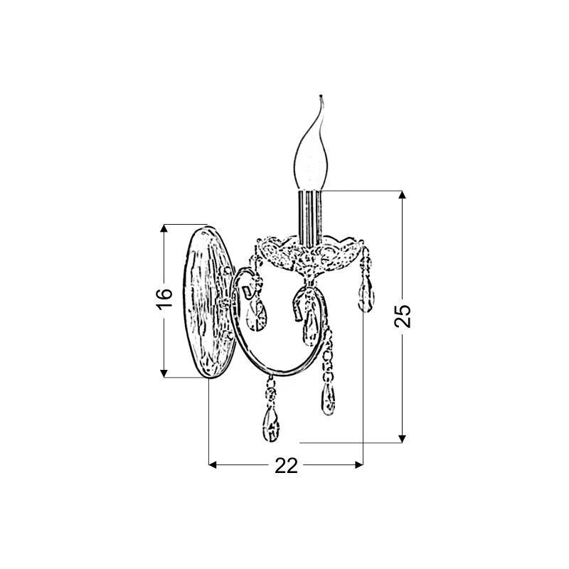 - Materiał: podstawa stalowa, elementy ozdobne szklane, bez kloszy