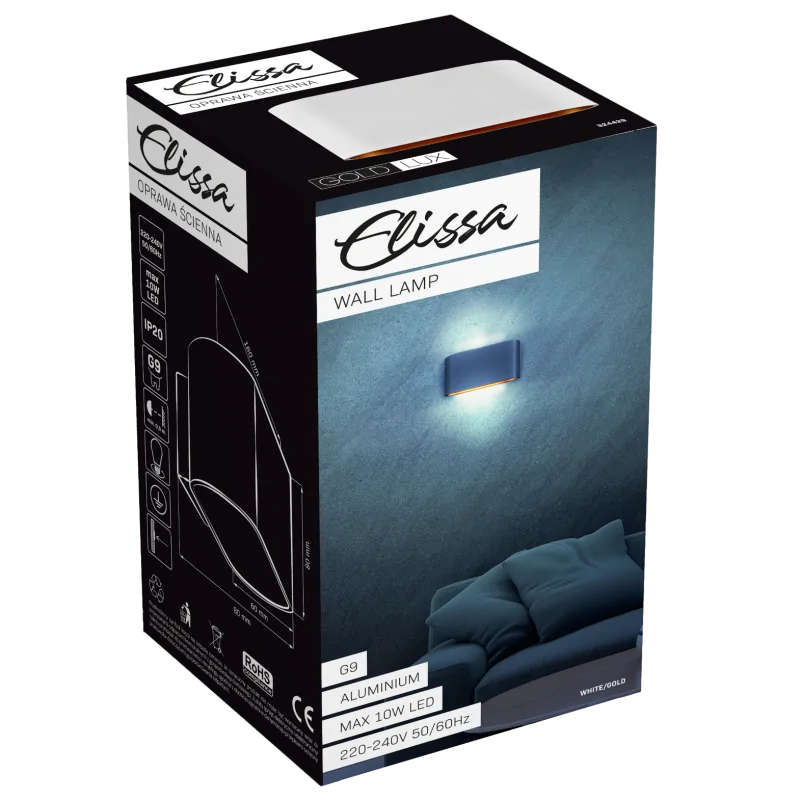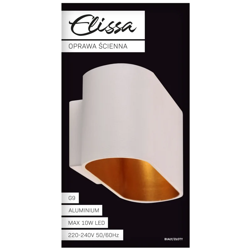 Biało-złoty kinkiet Elissa marki Polux nie tylko subtelnym światłem oświetli nam wybrane miejsce w naszym salonie, gabinecie czy sypialni, ale również stanie się piękną jego ozdobą. Dzięki wymiennym źródłom światła o gwincie G9 dobierzemy do naszych oczekiwań odpowiednią barwę światła oraz moc, ale nie wyższą niż 10W. Kinkiet sprzedawany jest bez żarówki w zestawie. Oświetlenie wykonane zostało z aluminum, czyli materiału odpornego na uszkodzenia. Kinkiet Elissa dostępny jest w dwóch wersjach kolorystycznych.