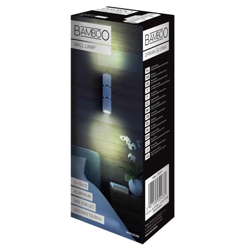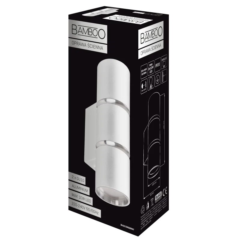 Biały kinkiet Bamboo marki Polux to oświetlenie, które sprawdzi się nie tylko w salonie, sypialni czy przedpokoju, ale stanie sie również piękną ozdobą wybranego miejsca. Oświetlenie, które cudownie rozproszy nam światło góra-dół. Dzięki wymiennym źródłom światła o gwincie GU10 dobierzemy odpowiednią do naszych oczekiwań barwę światła oraz moc, jednak nie większą niż 10W. Pamiętajmy, że żarówki nie są dołączone do kompletu. Stopień ochronności dla kinkietu to IP20. Wykonany został z dobrej jakości materiału. Oświetlenie sufitowe posiada 2-letnią gwarancję.