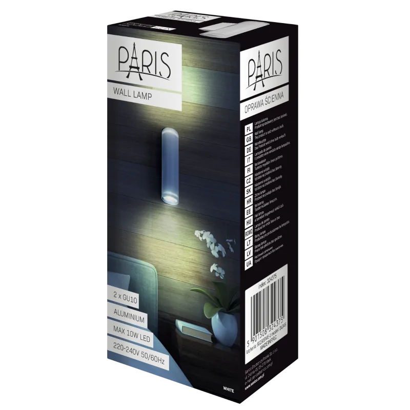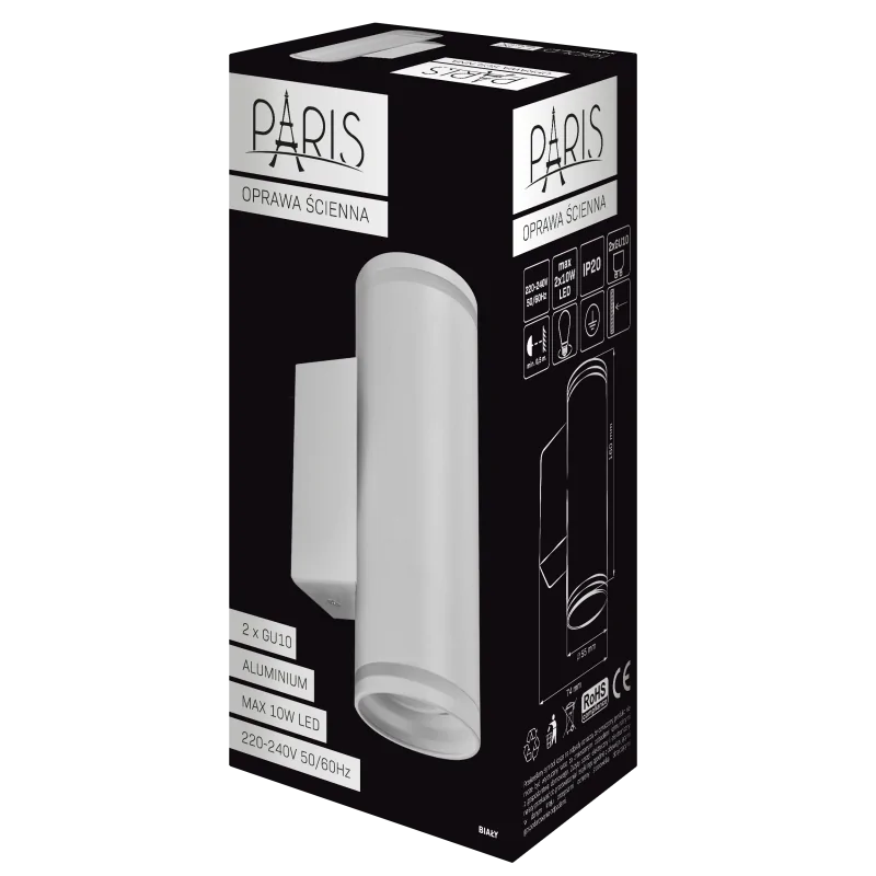 Biały kinkiet Paris marki Polux cudownie rozproszonym światłem góra-dół oświetli wybrane miejsce w salonie, gabinecie czy przedpokoju. Stanie się również wyjatkową ozdobą w wybranym wnętrzu. Dzięki wymiennym źródłom światła o gwincie GU10 dobierzemy odpowiednią do naszych oczekiwań barwę i moc światła, ale nie większą niż 10W. Pamiętajmy, że żarówki nie znajdują się w zestawie. Kinkiet Paris dostęny jest w dwóch wersjach kolorystycznych oraz z włącznikiem. Ze względu na stopień ochronności IP20 przeznaczony jest tylko do wewnątrz. Kinkiet wykonany został z dobrej jakości materiałów.