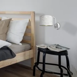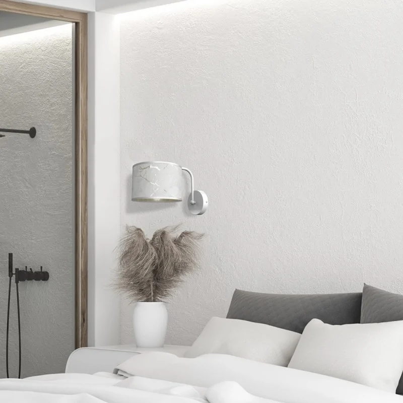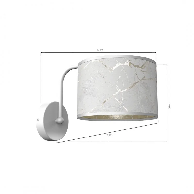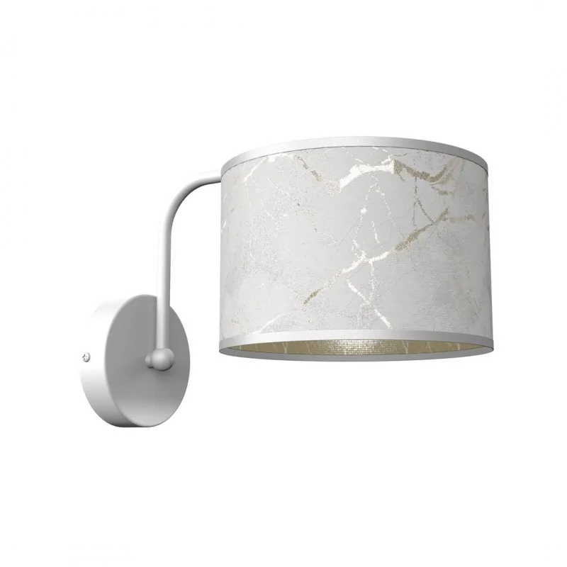 Kinkiet SENSO MLP7301 marki EKO-LIGHT, posiada charakterystyczny klosz, który przypomina marmur z typowymi rysunkami żyłek. Wykonany jest z białej podstawy z metalu oraz tkaninowego klosza z dodatkami złota. Lampa ścienna przystosowana jest na żarówkę o trzonku E27 (brak w zestawie), polecamy wybrać energooszczędną żarówkę LED. Pełnię swoich możliwości pokażą one jednak w większych zestawach, kiedy w ramach jednej przestrzeni zawiśnie kilka różnych modeli, oświetlając wszystkie jej zakamarki. W tej serii dostępny jest aż 20 lamp o różnej konstrukcji.