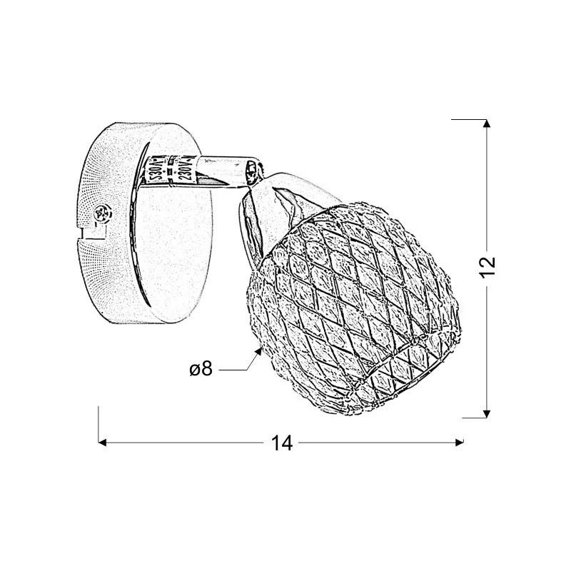 Oryginalny klosz w kinkiecie CLEAR zdobiony drobnymi koralikami z akrylu świetnie prezentuje się w nowocześnie urządzonych pomieszczeniach. Duża nadkloszówka kolorystycznie zlicowana z chromowaną podstawą oraz możliwość regulacji kąta nachylenia klosza w pionie i poziomie sprawiają, iż jest on nie tylko funkcjonalnym, ale i estetycznym rozwiązaniem oświetleniowym. Do kinkietu pasują żarówki z gwintem G9. Wymienne źródło światła pozwala na dobranie odpowiedniej barwy i mocy światła ( max. do 40W). Wymiary lampy ściennej to 12x14x8cm. Kinkiet sprawdzi się w modnych wnętrzach modern i glamour. W rodzinie CLEAR dostępne są również listwy oświetleniowe i lampy sufitowe oraz alternatywna linia z fioletowym kloszem.