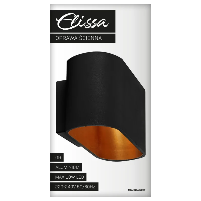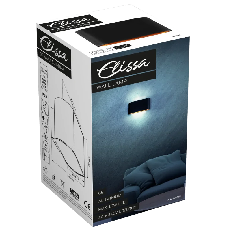 Czarno-złoty kinkiet Elissa marki Polux cudownie sprawdzi się jako oświetlenie naszego salonu czy sypialni. Delikatnie oświetli nam wybrane miejsce stając się jego ozdobą. Wymienne źródła światła o gwincie G9 zaś sprawią, że dobierzemy do naszych oczekiwań odpowiednią barwę i moc światła, nie większą niż 10W. Pamiętajmy, że żarówka nie jest dołączona do kompletu. Kinkiet wykonany został z wysokiej klasy aluminium, czyli materiału odpornego na uszkodzenia. Dostępny jest w dwóch wersjach kolorystycznych. Kinkiet ze względu na stopień ochronności IP20 przeznaczony jest tylko do wewnątrz budynku.