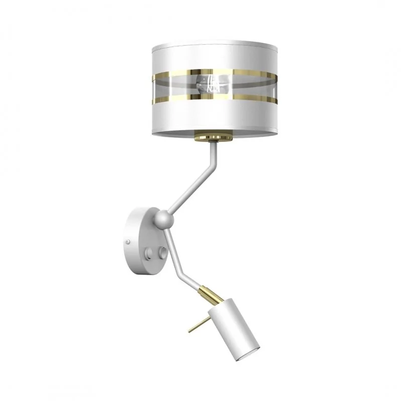 Kinkiet MLP7346 z serii ULTIMO marki EKO-IGHT, to połączenie modnego wykonania z funkcjonalnością. Prezentowane oświetlenie wyposażone zostało w główne źródło światła przystosowane na tradycyjną żarówkę E27 oraz dodatkowo posiada ruchomą część, która posiad miejsce na żarówkę GU10. Dodatkowe ramię szczególnie przyda się podczas wieczornego czytania książek. Metalowa podstawa zakończona jest białym kloszem, który posiada złote dodatki oraz transparentny pasek. Wymiar lampy ściennej to 38cm wysokości oraz 29cm szerokości. W serii ULTIMO znajdziemy 20 modeli różnych lamp.