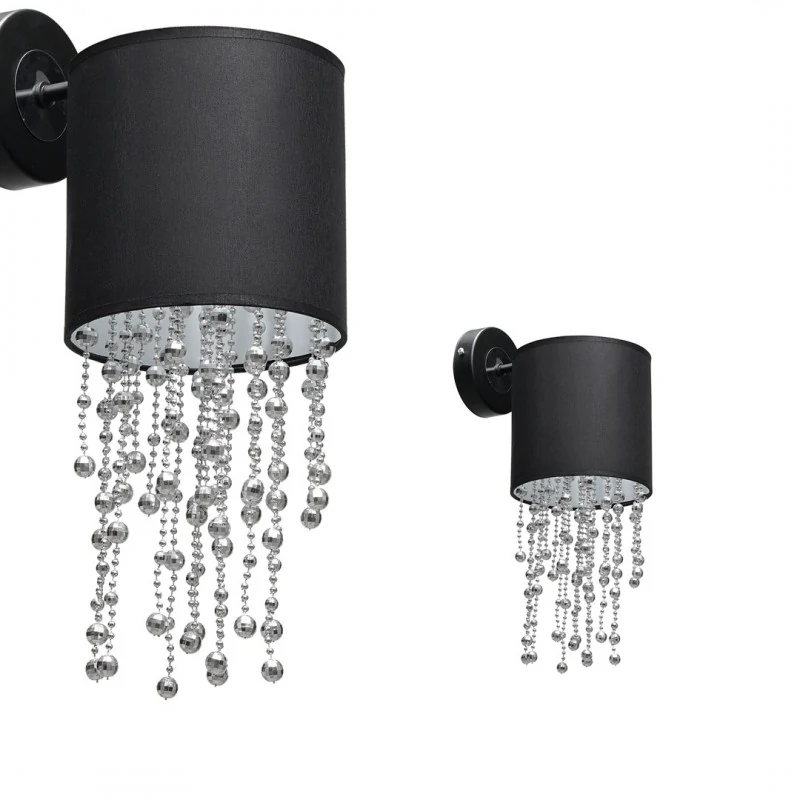 Kinkiet ALMERIA MLP6428 to kwintesencja stylu glamour i idealna propozycja do nowoczesnych, kobiecych wnętrz. Charakteryzuje się prostym, materiałowym kloszem w kształcie walca, jednak zwisające z jego wnętrza różnej długości sznury korali sprawiają, że całość prezentuje się niezwykle stylowo. Łańcuszki te mają jednak nie tylko walor estetyczny – dzięki nim światło efektownie się rozprasza i wprowadza w pomieszczeniu bardzo przytulny nastrój. Producent nie zaleca natomiast montażu lampy w pomieszczeniach wilgotnych (stopień ochrony IP20). Lampa ścienna marki EKO-LIGHT przystosowana jest na żarówkę o gwincie E27 do max mocy 60W. Źródło światła nie jest dołączone do zestawu. W serii ALMERIA znajdziemy szeroki wybór kinkietów oraz lamp wiszących w różnych kolorach oraz kształtach. Produkt objęty jest granicą producenta.