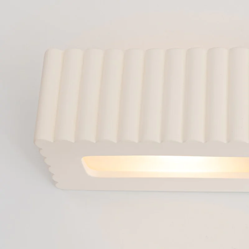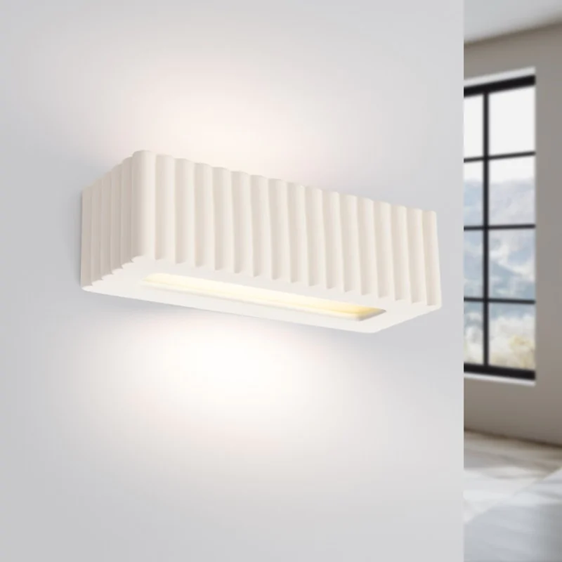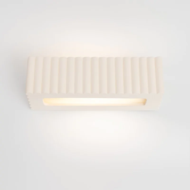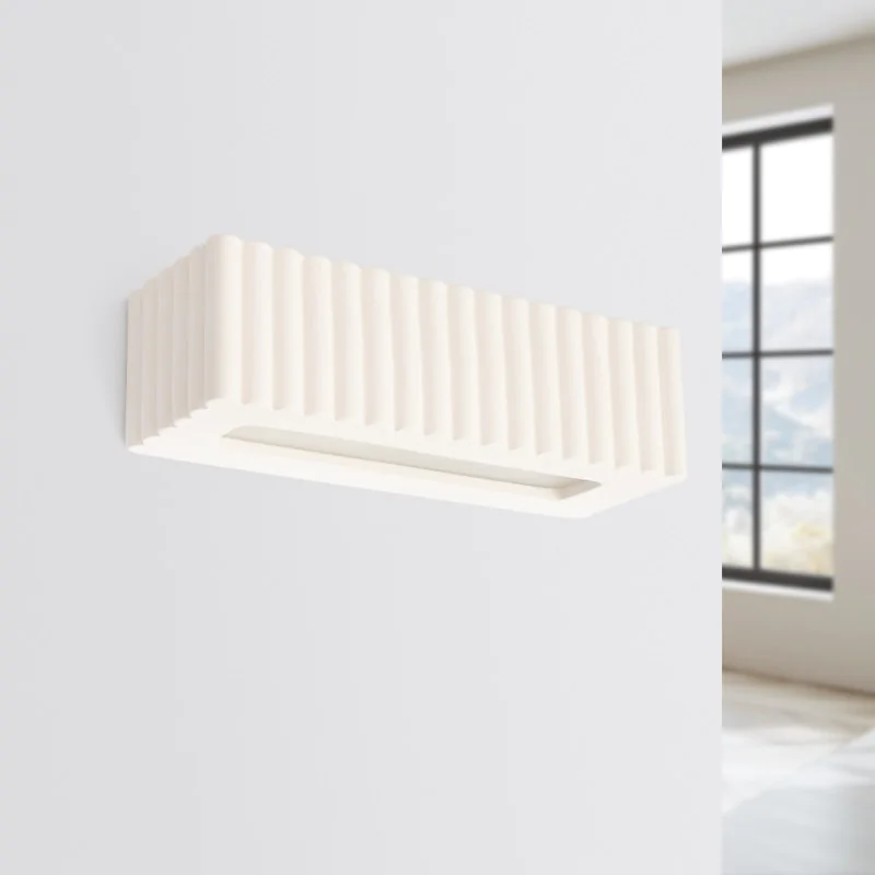 Kinkiet RIGATA łączy prostotę formy z elegancką funkcjonalnością. Ceramiczny klosz z charakterystycznym ryflowaniem skutecznie rozprasza światło, tworząc ciepłą atmosferę w pomieszczeniu. Dzięki standardowemu gwintowi E27, możesz dostosować natężenie światła do indywidualnych potrzeb.