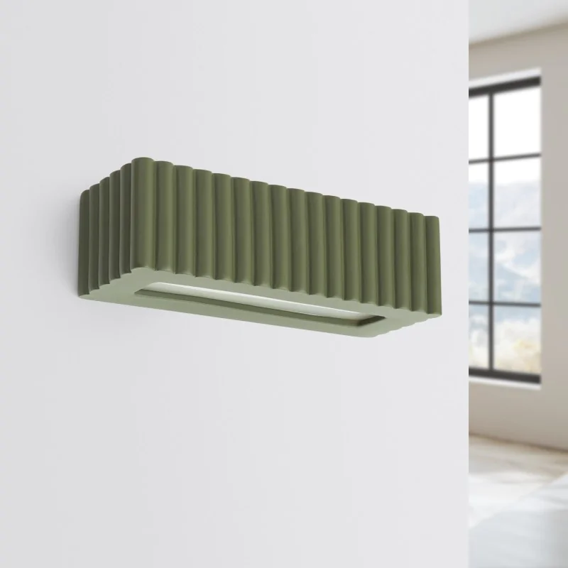 Kinkiet ceramiczny karbowany prostokąt E27 RIGATA zielony oliwkowy SL.1888 Sollux
