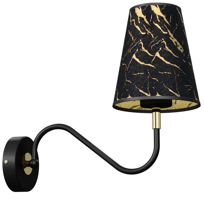 Lampa ścienna HERMES MLP7280, zaprojektowana przez polską markę EKO-LIGHT, z pewnością zachwyci wyjątkową konstrukcją i nietuzinkową kolorystyką. Ta oprawa została stworzona z myślą o wnętrzach urządzonych w stylu glamour. Uwagę przykuwa klosz, czarny kolor został przełamany złotymi elementami, które tworzą na powierzchni efektowną mozaikę. Kinkiet wykonany został z metalowej podstawy oraz tkaninowego klosza, przypominjący marmur. Przystosowany jest na jedno źródło światła o gwincie E14 - polecamy wybrać energooszczędną żarówkę LED. W tej serii znajdziemy również dwie lampy wiszące, lampę podłogową oraz lampkę stołową.