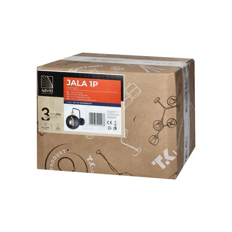 Kinkiet czarno-złoty loft E27 max 15W JALA 1P AD-LD-6224BE27M ORNO