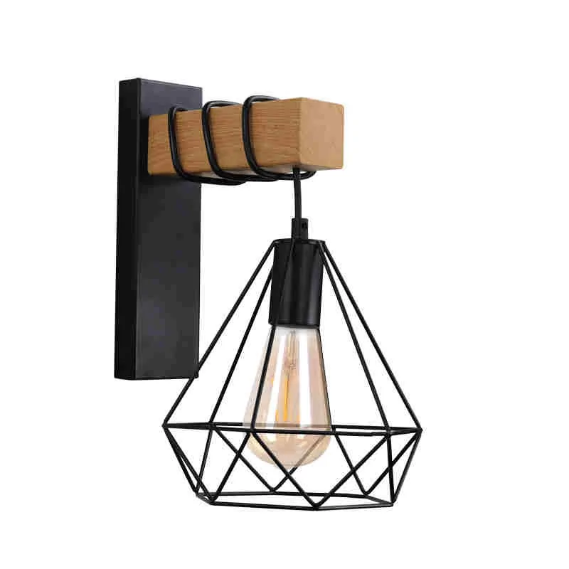 Kinkiet druciany z drewnianą wstawką .VIGO WOOD E27 POLUX