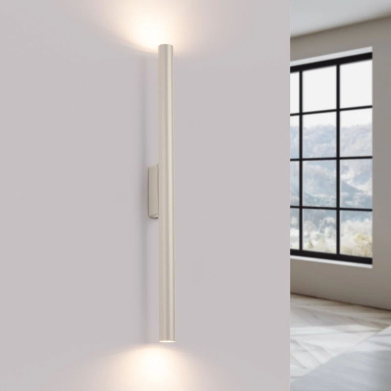 Lampa na ścianę długa tuba dwukierunkowa beżowa