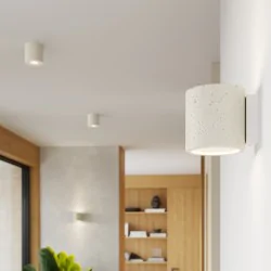 Oświetlenie z tej kolekcji zapewnia równomierne, efektywne rozproszenie światła, idealne do budowania nastroju w salonie, sypialni czy korytarzu. Odbite od betonu światło tworzy delikatny efekt wizualny, który podkreśla fakturę ściany i dodaje wnętrzu głębi.