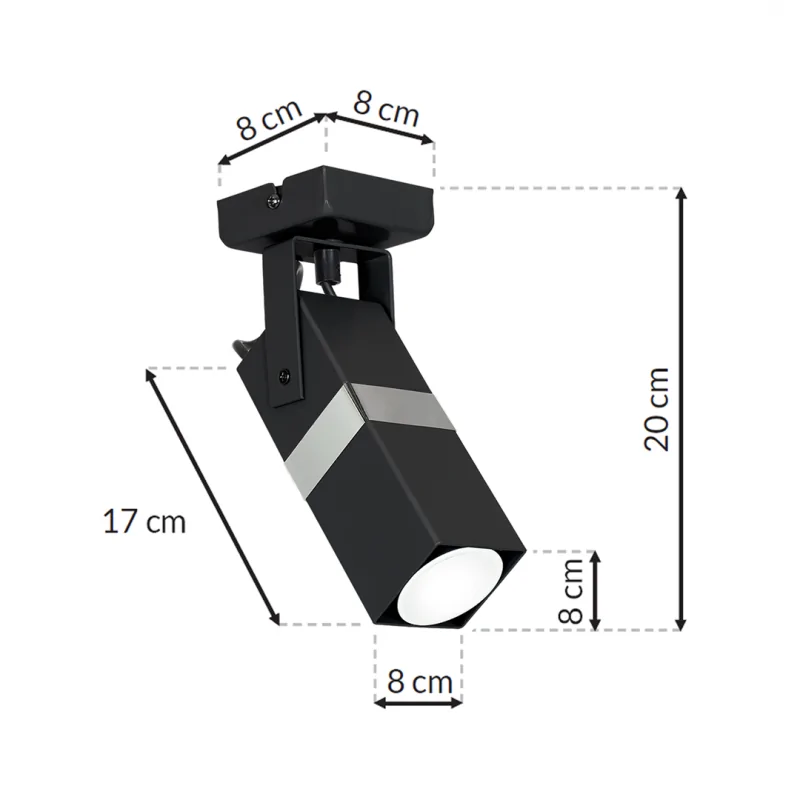 Nowoczesny kinkiet Vidar charakteryzuje się eleganckim, a zarazem prostym wykonaniem. Będzie to świetne rozwiązanie do każdego typu wnętrza. Czarny klosz w kształcie prostopadłościanu został ozdobiony srebrnym paskiem, co dodaje mu ciekawego wyglądu. Brak źródła światła w zestawie pozwala na indywidualne dobranie żarówki do Twoich potrzeb. Dedykowanym źródłem światła jest żarówka led z trzonkiem GU10. Produkt wyposażony jest w stopień odporności IP20 i przystosowany jest do użytku wewnętrznego.