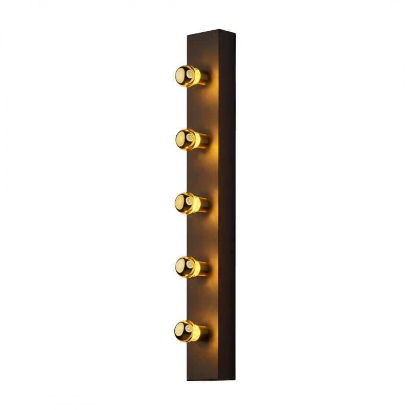 Kinkiet PHOENIX MZ5020, ma miejsce na niewielkie żarówki, które umieszczono w regularnych odstępach na prostokątnej ramie, przypominającej tą od lustra, tworząc unikalną, świetlną aureolę. Strugi światła koncentrują się na jednym punkcie w nieoczywisty sposób rozświetlając wnętrze. Oświetlenie marki EKO-LIGHT, jest nie tylko źródłem światła, ale też efektownym dodatkiem. Lampa ścienna przystosowana jest na 5 żarówkę o gwincie E14. Długość belki to 75cm, natomiast jej szerokość wynosi 9cm. Prostokątne, symetryczne formy “opakowano” w szalenie modne połączenie tradycyjnej czerni oraz odważnego, ale efektownego złota. Wybierając kolekcję Phoenix można wybierać spośród dwóch kinkietów o zróżnicowanej wielkości i trzech lamp stojących, w tym jednej z lustrem.