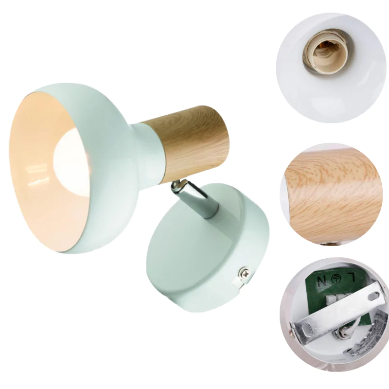 - Minimalistyczny design: Biały metalowy klosz z dekoracyjną nadkloszówką imitującą drewno.