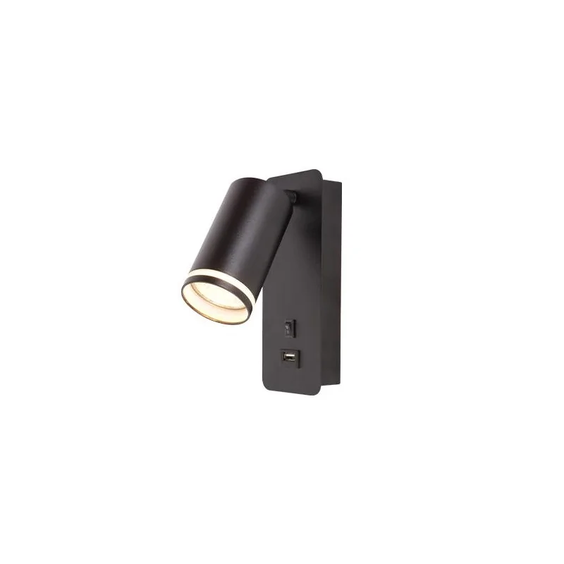 Kinkiet ścienny do czytania z włącznikiem i USB czarny reflektor GU10 na ścianę Ring 0933 LVT