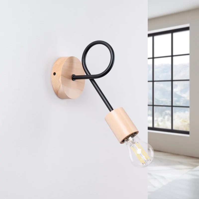 Kinkiet supeł skandynawski drewniany E27 EMBER czarny Sollux SL.1476