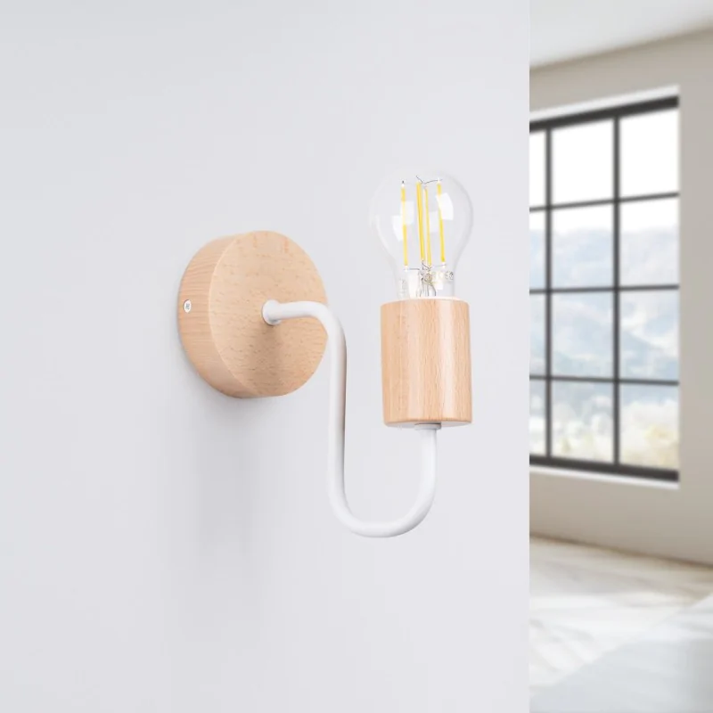 Kinkiet TIMBO biały Lampa ścienna drewniana skandynawska Sollux SL.1664