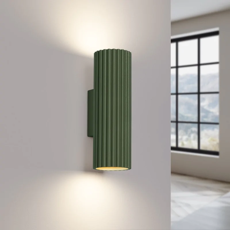 Kinkiet ścienny tuba zielona karbowana KARBON 20 oliwkowa 2xGu10 Sollux SL.1657
