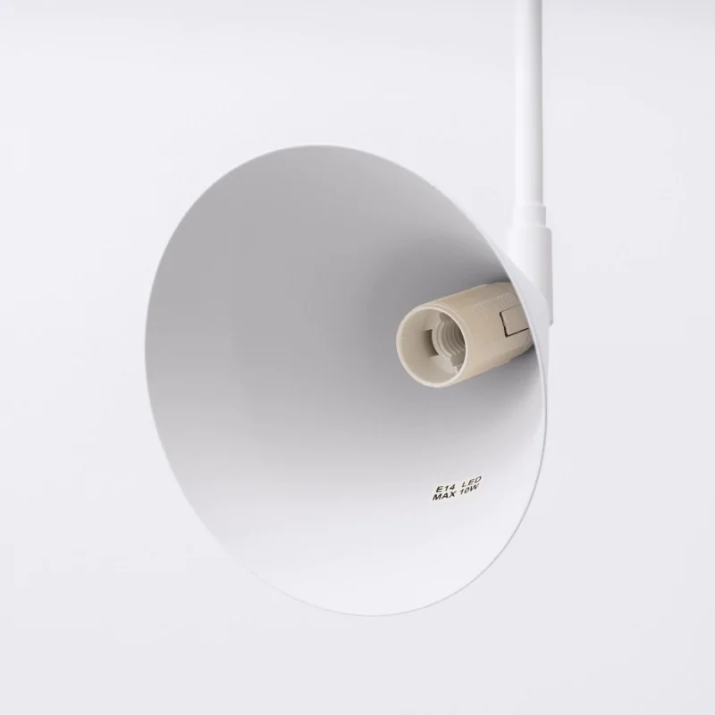 NOX to nowoczesny kinkiet o wyjątkowo lekkiej formie i wyraźnym charakterze. Prosty, metalowy wysięgnik zakończony geometrycznym, stożkowym kloszem tworzy intrygującą kompozycję, która świetnie sprawdzi się w nowoczesnych, skandynawskich czy industrialnych aranżacjach.
