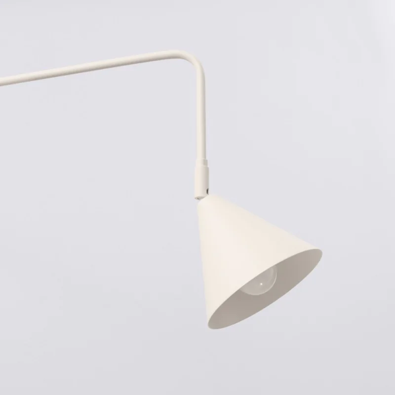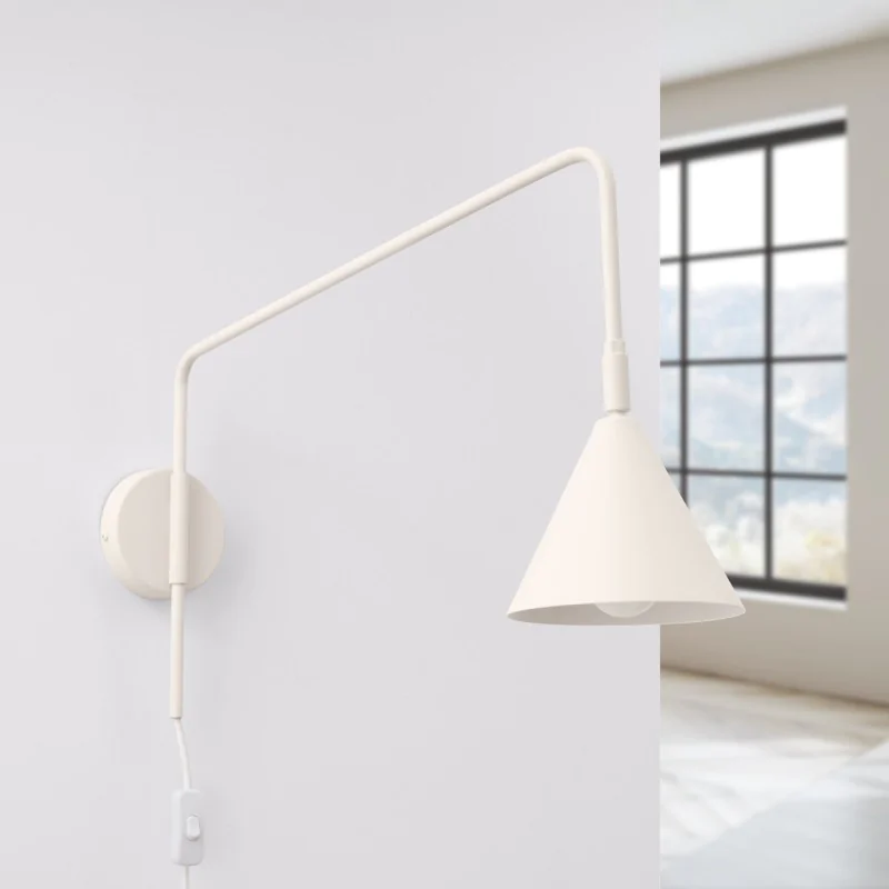 NOX to nowoczesny kinkiet o wyjątkowo lekkiej formie i wyraźnym charakterze. Prosty, metalowy wysięgnik zakończony geometrycznym, stożkowym kloszem tworzy intrygującą kompozycję, która świetnie sprawdzi się w nowoczesnych, skandynawskich czy industrialnych aranżacjach.