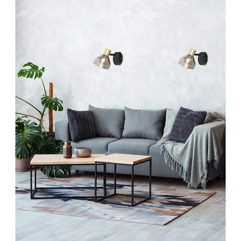 Szklany kinkiet czarny - złoty z dymionym kloszem 1X40W E14 GREGORY 21-76724 Candellux