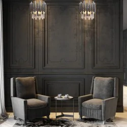 Kinkiet ML6936 MADISON to piękna i niezwykle stylowa propozycja od marki EKO-LIGHT, która zachwyci wszystkich miłośników oryginalnego designu. Model ten wyróżnia nowoczesna i stylowa konstrukcja, która w połączeniu ze szlachetnym, chromowym kolorem tworzy niesamowity efekt. Szerokość oprawy to 50cm, natomiast wysokość wynosi 45cm. Lampa ścienna posiada dwa miejsca na żarówkę o gwincie E14 do maksymalnej mocy 40W (brak w zestawie). Po zaświeceniu kryształki oraz metalowe rurki efektowanie rozpraszają światło, tworząc przy tym efekt glamour. Ten model dostępny jest w wersji złotej oraz jako lampa wisząca.