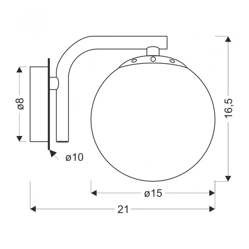 Materiał wykonania: podstawa stalowa, klosz szklany. Kolor podstawy: czarny. Wysokość: 16,5. Szerokość: 21. Głębokość: 15. Wymiary (wys. x szer. x gł.): 16,5x21x15. Waga netto: 0,42. Rodzaj trzonka: E14.