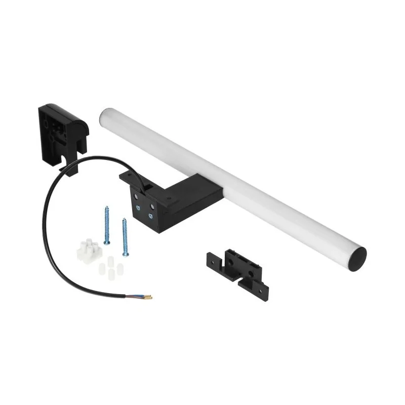 Kinkiet z kolekcji PEEGEL marki ORNO, w czarnym kolorze, na wysięgniku to idealne i eleganckie rozwiązanie dla zapewnienia właściwego oświetlenia nad lustro lub w gablocie. Lampa nadaje się do montażu zarówno na ścianę jak i wewnątrz mebla. Źródło światła zapewniają bardzo jasne diody LED o długiej żywotności, a dzięki wysokiemu stopniowi ochrony IP44 można instalować ją w pomieszczeniach o podwyższonej wilgotności. Oprawa wykonana została z tworzywa sztucznego, a klosz lampy z akrylu. Długość oprawy wynos 40cm. Oświetlenie świeci o mocy 6W, neutralną barwą światła, równą 4000K. Lama ścienna z serii PEEGEL dostępna jest w różnych kolorach.