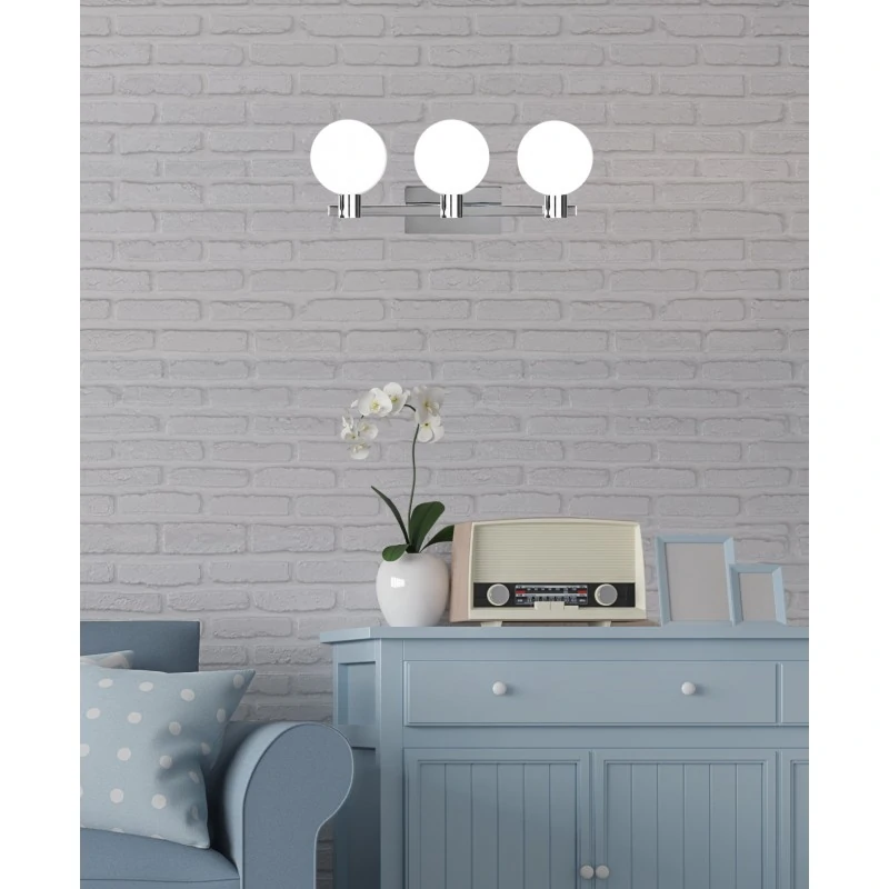 Nietuzinkowe oświetlenie ścienne MALDUS 23-01450 firmy Candellux, dopasuje się stylem do niemal każdego wnętrza. Chromowa metalowa podstawa oraz szklane klosze w kolorze białym tworzą spójną i nowoczesną konstrukcję. Kinkiet mierzy 17cm wysokości oraz 45cm szerokości. Przystosowany jest na 3 źródła światła o mocy 40W i gwincie G9. Żarówki nie są dołączone do zestawu, więc możemy dowolnie dobrać moc oraz barwę światła. Lampa dostępna jest również w trzech wersjach wiszących oraz jako podwójny kinkiet. Produkt objęty gwarancją producenta.