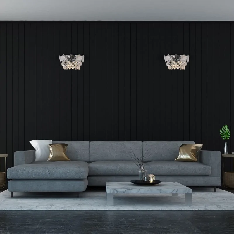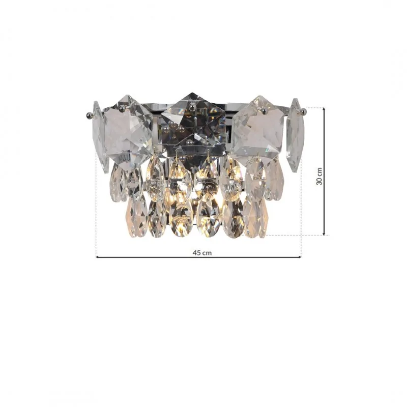 Lampa ścienna SELENA ML6938 wykonana przez polskiego producenta EKO-LIGHT, ta wyjątkowa konstrukcja ozdobiona dwoma rodzajami kryształków, które efektowanie mienią się po zaświeceniu. Przystosowane jest na dwie żarówki o trzonku E14 do maksymalnej mocy 60W (brak w zestawie). Kinkiet został stworzony szczególnie do wnętrz w stylu glamour, wraz z lampą wiszącą SELENA, świetnie również oświetli sale bankietowe, czy bogato zdobione pomieszczenia. Lampa mierzy 30cm wysokość oraz 45cm szerokość. Ten model dostępny jest również w kolorze złotym.