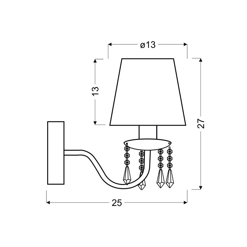 Kinkiet RUTI 21-58706, marki Candellux to uniwersalne oświetlenie, łączące w sobie klasykę z elegancją i nowoczesnością. Chromowa podstawa zakończona jest abażurem wzbogaconym dekoracyjnymi kryształkami. Podstawa wykonana jest ze stali a klosz z tkaniny od środka usztywniony PCV. Wymiary oświetlenia wynoszą: wysokość - 27cm, szerokość - 25cm. Lampa ścienna przystosowana jest na jedną żarówkę o gwincie E14 do maksymalnej mocy 40W (brak w zestawie). Należy do klasy energetycznej A++-E. W serii RUTI znajdziemy również lampę wiszącą. Produkt objęty jest gwarancją producenta.