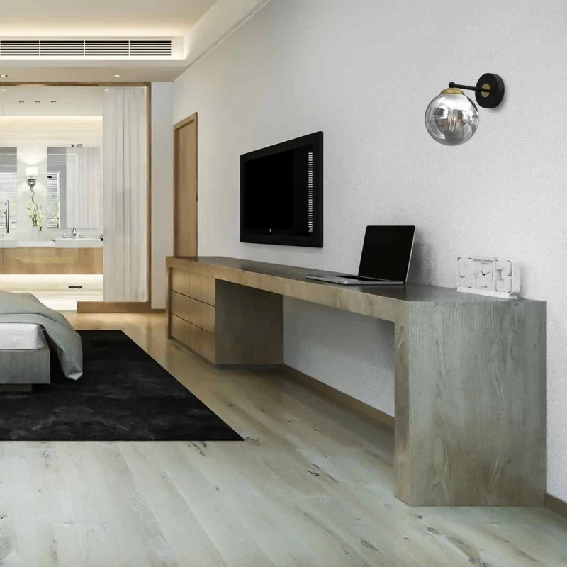 Lampa ścienna REFLEX MLP8412 polskiej marki EKO-LIGHT, będzie dobrze oświetlała małe pomieszczenia łazienek i toalet, jednocześnie nadając im przytulności i niepowtarzalnego stylu. Samo mocowanie dymionej kuli ma akcent złotawy, co przełamuje szare i srebrne tony dominujące w kolorystyce lampy. Kinkiet mierzy 21cm wysokości oraz 14cm długości. Oryginalna kolorystyka połączona z nowoczesną konstrukcją idealnie wpasuje się we wnętrza w stylu glamour jak i te o surowym, minimalistycznym wykończeniu. W lampie należy zamontować żarówkę o gwincie E14 do max mocy 40W (brak w zestawie). Do prezentowanego kinkietu polecamy wybrać lampy sufitowe, wykonane w tym samym stylu.
