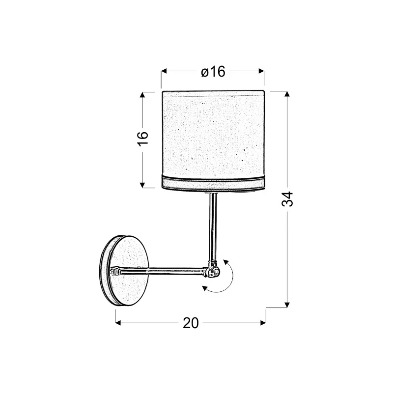 - Materiał: podstawa stalowa, abażur tkanina/PCV