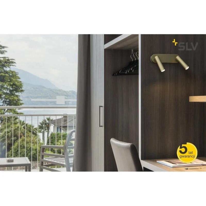 Kinkiet na ścianę podwójny KARPO 30 DOUBLE 1002176 firmy SPOTLINE doskonale sprawdzi się jako oświetlenie przy biurku. Delikatny złoty kolor sprawi, że nada on przyjemnego klimatu. Lampa ścienna emituje ciepłą białą barwą światła, której temperatura jest równa 3000K. Strumień świetlny kinkietu wynosi 1100 lumenów. Przybliżony czas twałości zintegrowanego źródła światła w oprawie to około 30000h. Kinkiet firmy SPOTLINE rozsyła światło pod kątem 40 stopni i został objęty 5-letnią gwarancją.