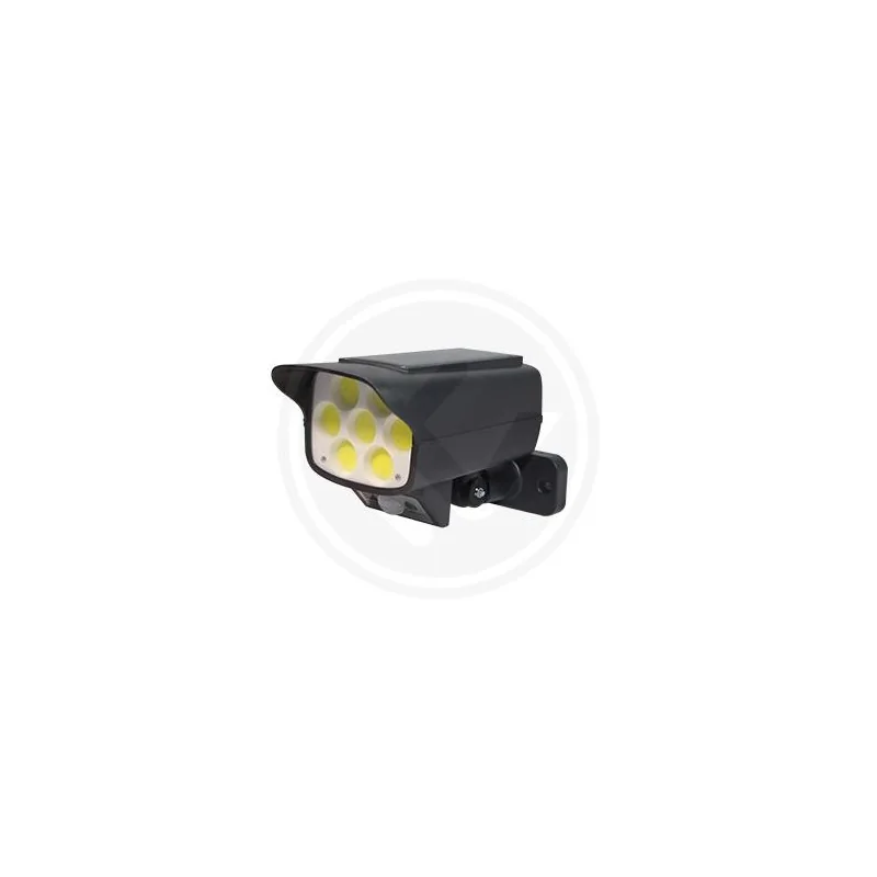 Oświetlenie ogrodowe 1296 to energooszczędna lampa zasilana energią słoneczną w kształcie kamery, dlatego bez problemu zmontujemy ją niemal w każdym miejscu, ponieważ nie wymaga podłączenia instalacyjnego. Oprawa jest odporna na trudne warunki atmosferyczne - stopień odporności to IP44. Kinkiet solarny wyposażony jest w czujnik zmierzchu i ruchu. Kinkiet ogrodowy to nowoczesna konstrukcja wykonana z PCV i PC w kolorze czarnym, która świeci zimną barwą (5000K-6000K) o mocy 4.2W. Model posiada 42 wydajne diody led COB. Wygląd atrapy kamery podnosi bezpieczeństwo Twojego podwórka.