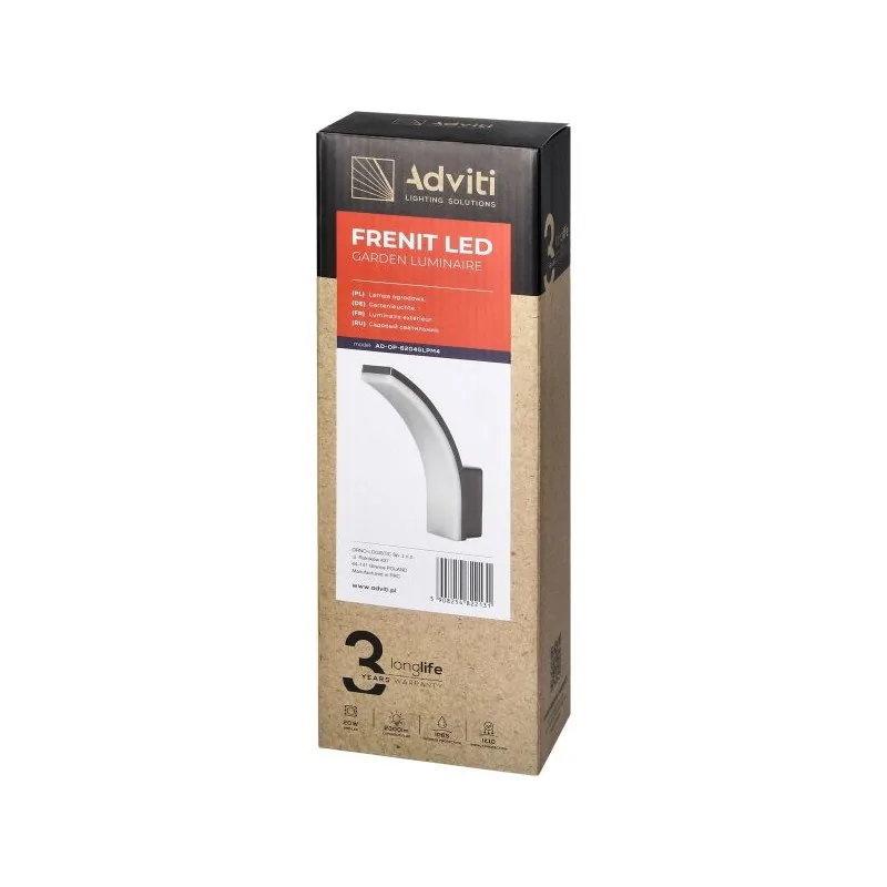 Szara oprawa ogrodowa FRENIT firmy ORNO wyposażona została w zintegrowane światło led, co charakteryzuje się energooszczędnością oraz długą trwałością (50 000h). Szary kolor obudowy i jej nowoczesny kształt wkomponuje się w każde otoczenie. Produkt świeci neutralną barwą światła o temperaturze barwowej 4000K i strumieniu świetlnym na poziomie 2000 lumenów. Ze względu na wysoki stopień ochrony IP65 oprawa odporna jest na wnikanie pyłu i wilgoci. Produkt dostępny jest również w czarnej lub białej wersji kolorystycznej. W oprawie zastosowano klosz z poliwęglanu o mlecznej barwie, dzięki której światło będzie równomiernie rozprowadzone. Wymiary oprawy led to 250 x 188 x 66 mm. Model dostępny również w wersji z czujnikiem ruchu.