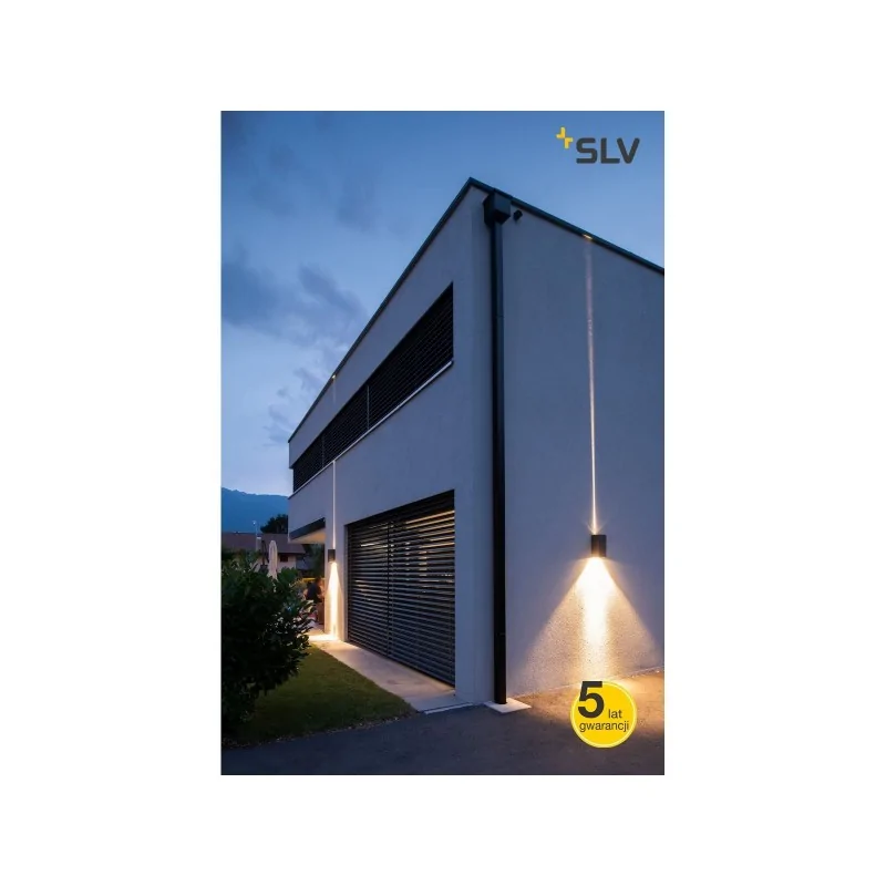 Dekoracyjne oświetlenie zewnętrzne budynku marki SPOTLINE charakteryzuje się niezwykle efektownym sposobem świecenia odmieniającym charakter całej elewacji budynku. Prezentowany kinkiet ogrodowy posiada wbudowane źródło światła LED emitujące ciepłe, białe światło 3000K z mocą strumienia świetlnego 2000 i 130 lumenów. Ze względu na klasę szczelności IP44 oprawa ścienna odporna jest na niekorzystne warunki atmosferyczne. Oświetlenie działa nawet do 25000 godzin.