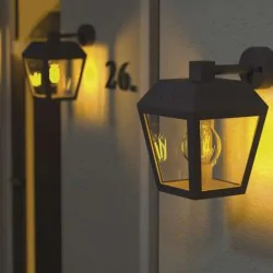 Kinkiet ścienny czarny zewnętrzny ADENIA to połączenie klasycznego designu z solidnym wykonaniem, które podkreśli charakter każdej elewacji. Dzięki uniwersalnemu wyglądowi pasuje zarówno do nowoczesnych, jak i tradycyjnych aranżacji, dodając im elegancji i funkcjonalności. Czarna obudowa nadaje lampie wyjątkowego stylu, a jej subtelna forma sprawia, że doskonale komponuje się z otoczeniem, tworząc przytulną atmosferę przy wejściu, na tarasie czy w ogrodzie.
