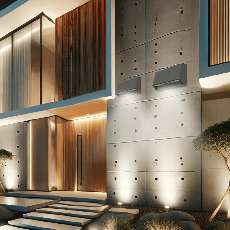 - Nowoczesna lampa elewacyjna LED: Elegancki design, który doskonale komponuje się z fasadą budynku.