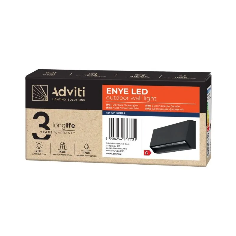 Kinkiet elewacyjny LED na zewnątrz domu Grafitowy ENYE AD-OP-6191L4 Adviti