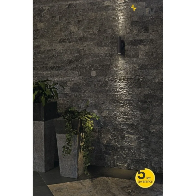 Kinkiet ogrodowy ASTINA OUT ESL firmy SPOTLINE jest w kolorze antracytowym, który z łatwością wkomponuje się w każde otoczenie. Wysokiej jakości aluminiowa obudowa i stopień odporności IP44 sprawiają, że oprawa jest odporna na zarysowania oraz może być zastosowana na zewnątrz. Oferowane źródło światła to dwie żarówki z trzonkiem GU10, o maksymalnej mocy 11W (2x11W), które nie znajdują się w zestawie. Zaletą lamp firmy SPOLTINE jest wysoka jakość wykonania oraz wydłużona gwarancja aż do 5 lat. Oprawa dostępna jest w różnych wersjach kolorystycznych.