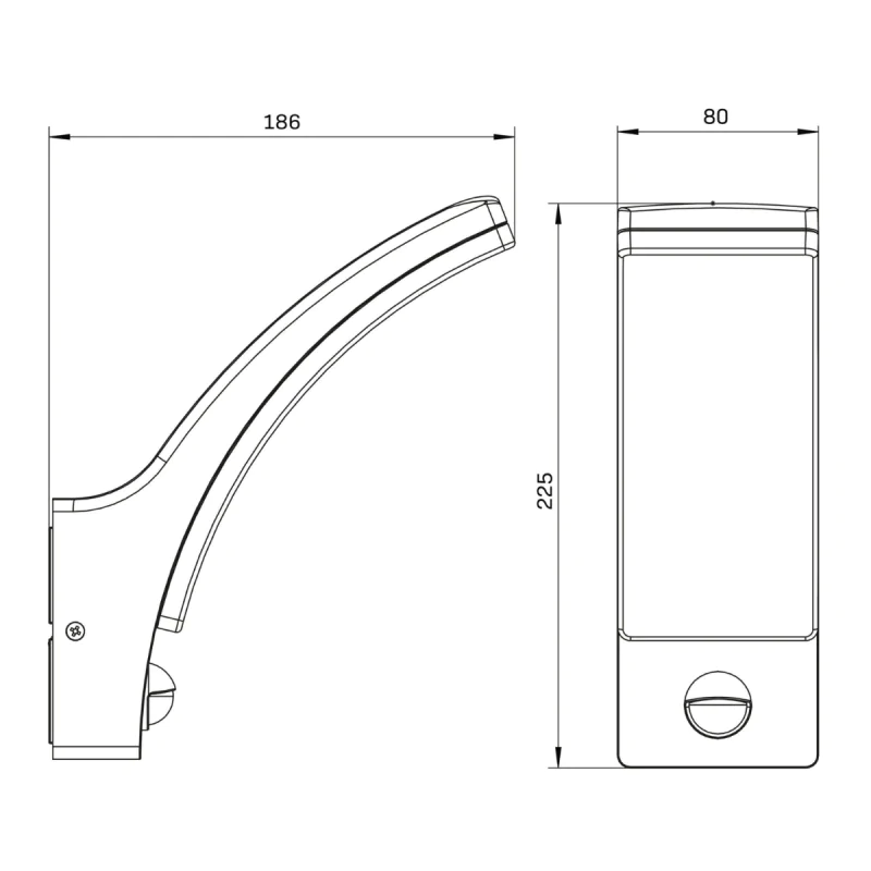 - Rodzaj: Kinkiet LED zewnętrzny z czujnikiem ruchu i zmierzchu