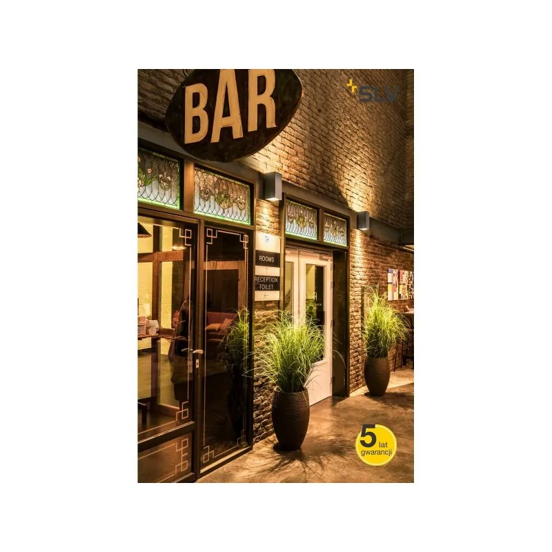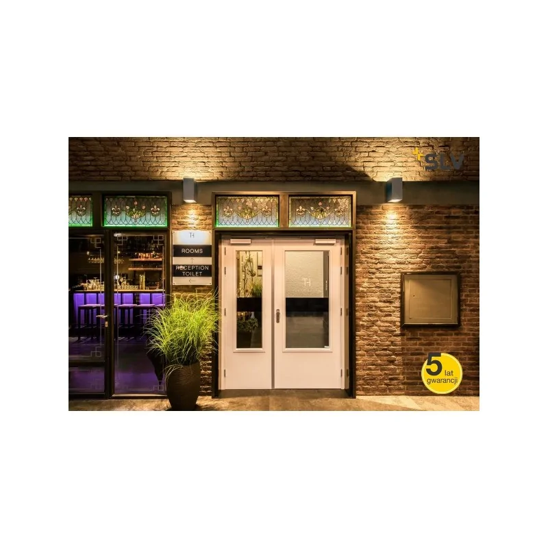 Kinkiet dekoracyjny zewnętrzny od marki SPOTLINE to nowoczesne oświetlenie w prostej formie prostopadłościanu z aluminium w szarym kolorze. Klasa szczelności IP44 decyduje o odporności lampy na bryzgi wody dobiegające z każdej strony oraz wnikanie pyłów z otoczenia. Możemy zatem wykorzystać prezentowaną oprawę jako oświetlenie ogrodowe bez obaw o jakiekolwiek uszkodzenia. Wbudowane źródło światła LED emituje ciepłe białe światło 3000K i działa nawet do 30000 godzin. Kinkiet objęty 5-letnią gwarancją producenta.
